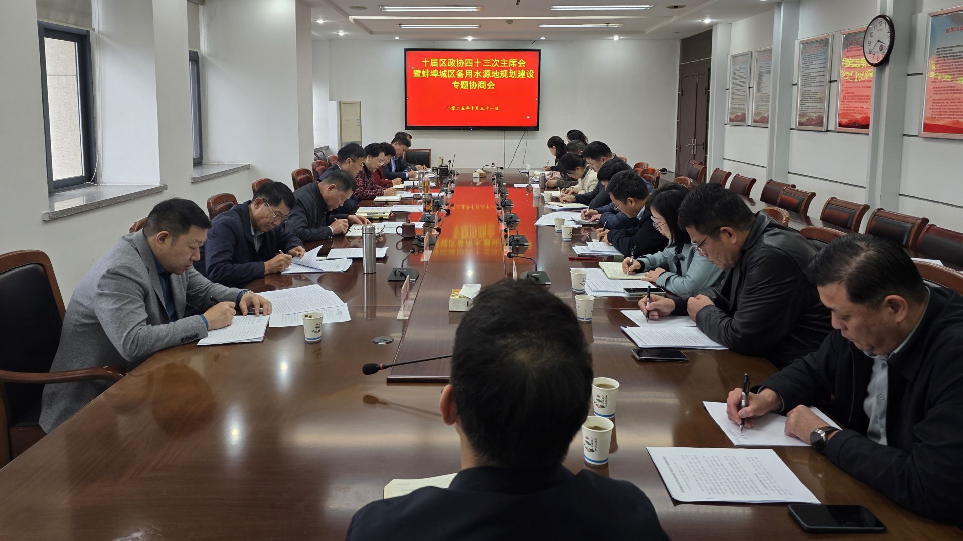 會議傳達學習了習近平總書記關于治水的重要論述;聽取了周維剛作的關于蚌埠城區備用水源地規劃建設專題調研報告;區政協委員蔣嵩、魏珍等就水源地遷移申報、空間規劃同步優化、文旅基礎設施強化等方面建言獻策;生態環境分局等相關部門單位作了回應發言。