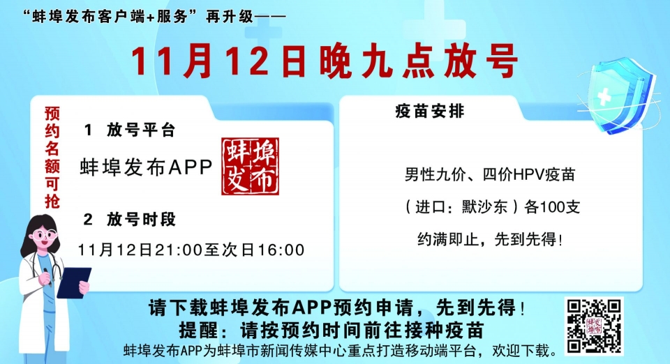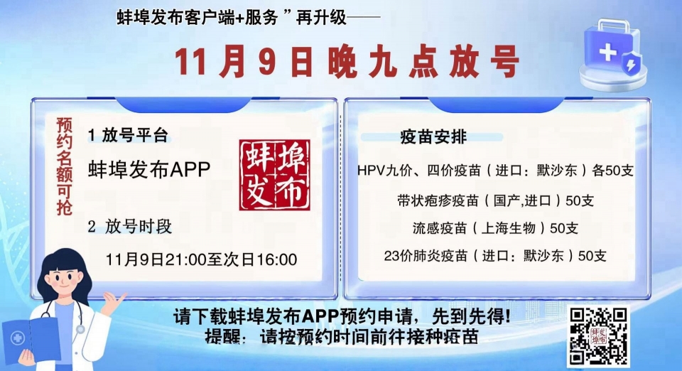 11月9日晚九點!蚌埠發布APP疫苗預約準時開放→