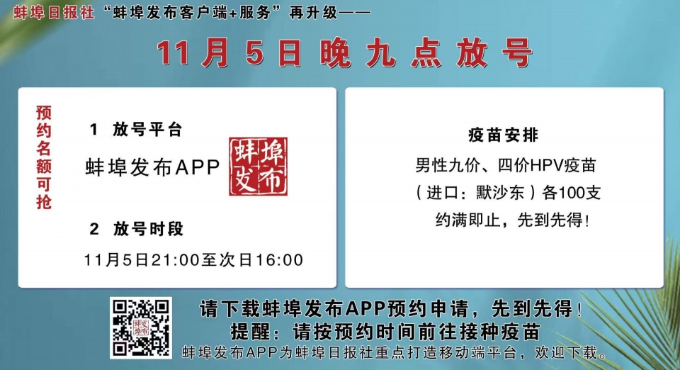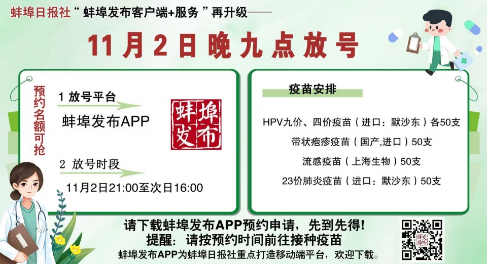 11月2日晚九點!蚌埠發布APP疫苗預約準時開放→